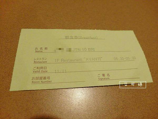 這個是我們隔天的早餐券