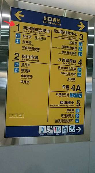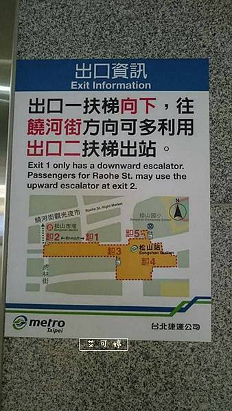 到松山捷運站後我是走1號出口(爬樓梯),2號當然也可以(因為有手扶梯往上)