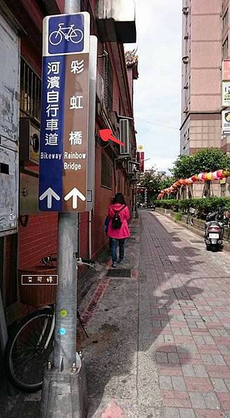 第一個右轉的路就可以轉且直走到底就是彩虹橋