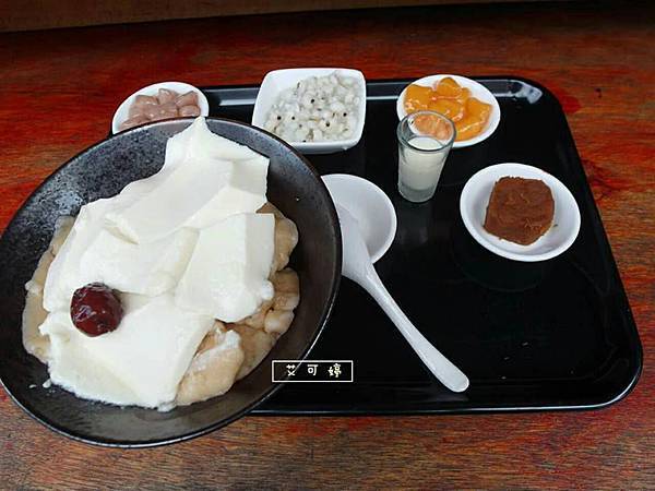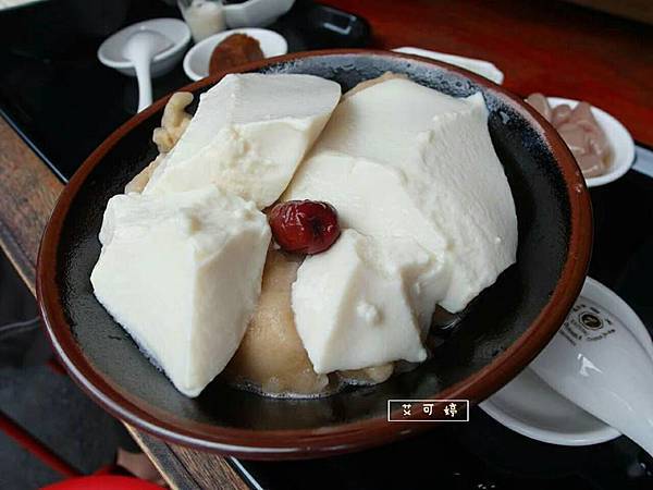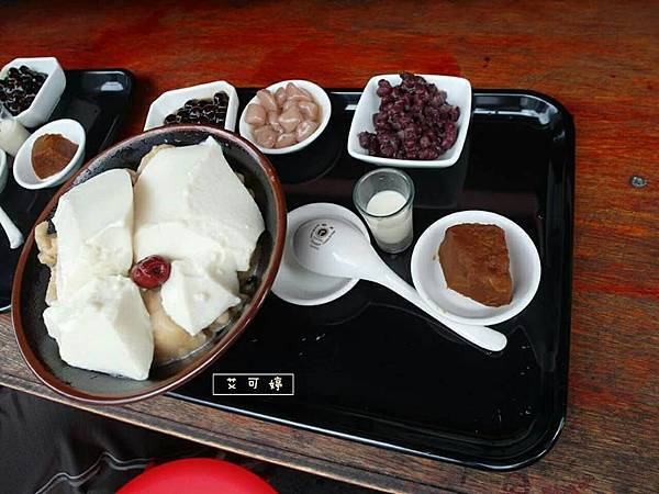 冰豆花以黑糖綿綿冰為基底,豆花吃起來綿密細緻,上面再放上一顆紅棗點綴