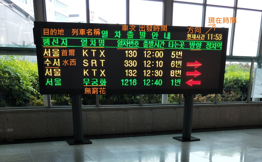 所以最後選擇搭火車,而火車又分為無窮花號、新村號、KTX以及SRT