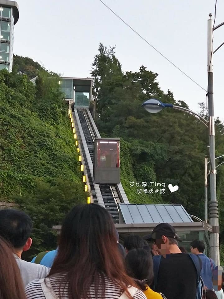 接著就又回到明洞,準備搭透明纜車去首爾塔,光是排這電梯跟買票就花了超久時間