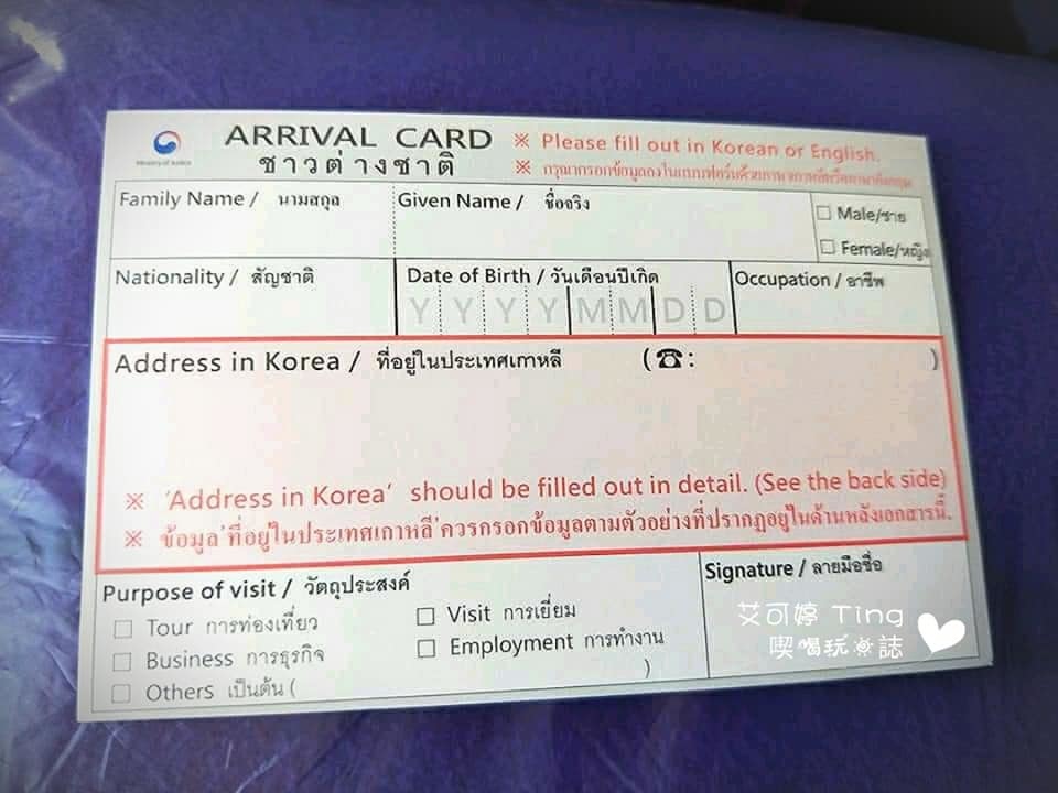 拿到入境卡時有點驚訝一下,還好我事先有用圖片紀錄出國的旅館地址電話那些