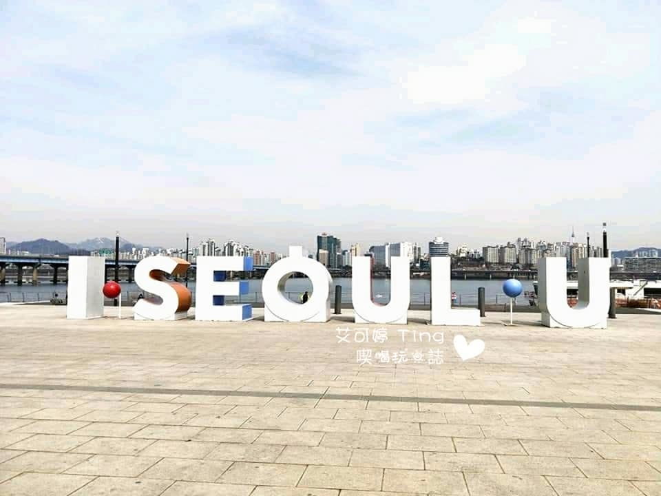 因為只吃包飯不能內用被硬要外帶,不想浪費時間就直接帶去汝矣渡口站的公園這,看到這打卡點真的不少人來拍照