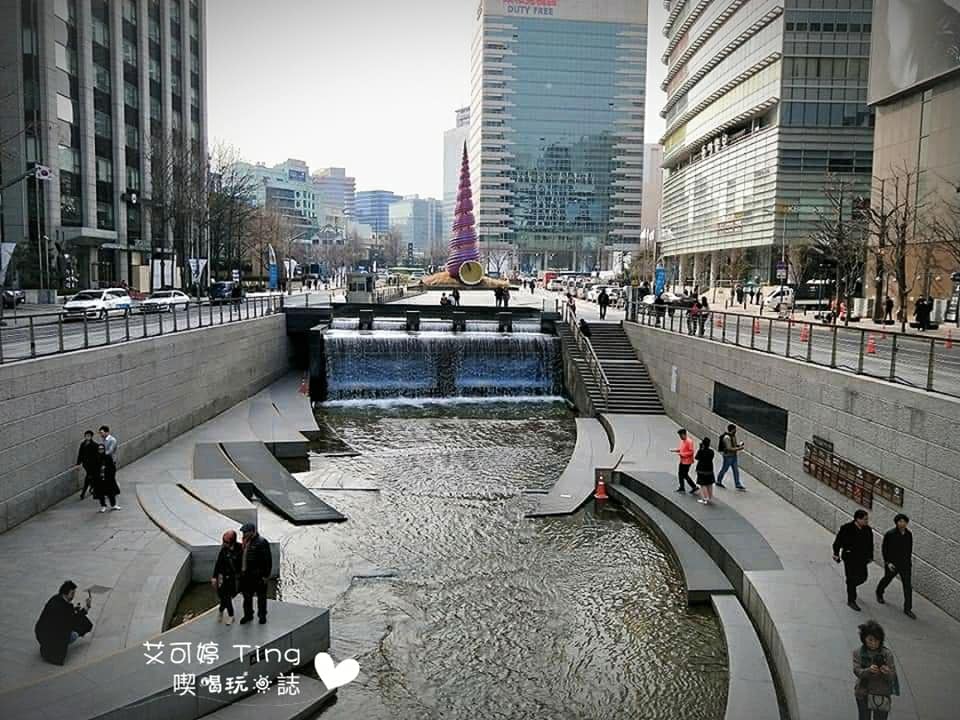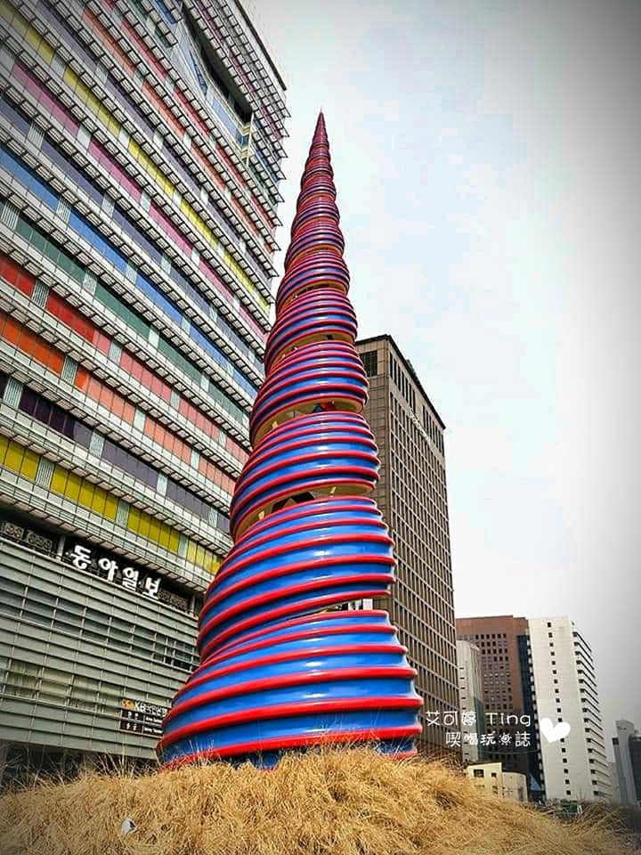 看著地圖終於讓我走到清溪廣場,看到下圖這個【紫色海螺雕塑】—“spring”是清溪川的標誌,也是眾多韓劇、韓國電影的拍攝