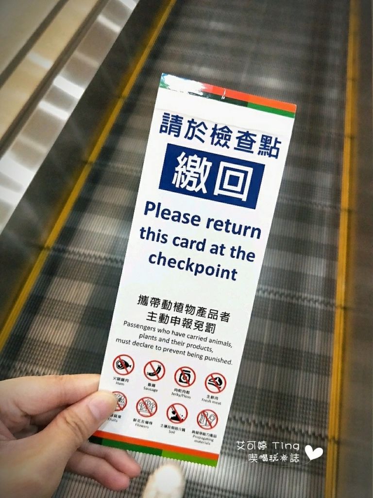 因為前陣子非洲豬瘟的關係,空姐有廣播入境後要拿這張,之後再繳回,在提領行李時也有看到防疫犬在聞別人的行李~~